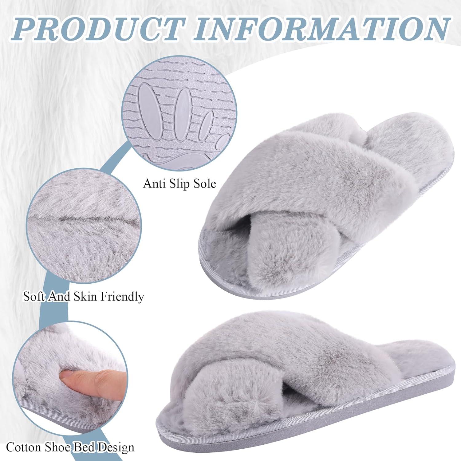 - Open Toe Bridal Slippers: The cross open-toe style of plush slippers is not only fashionable and beautiful, but also allows the toes to breathe freely, avoid stuffy heat, and increase wearing comfort. The open-toe design and slip-on style make it easy to put on and take off
