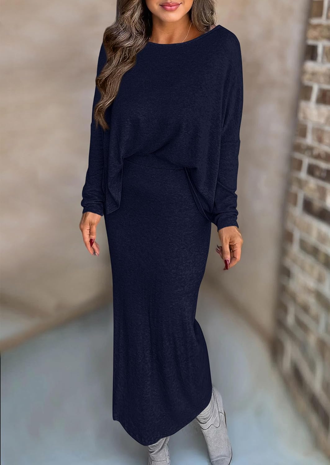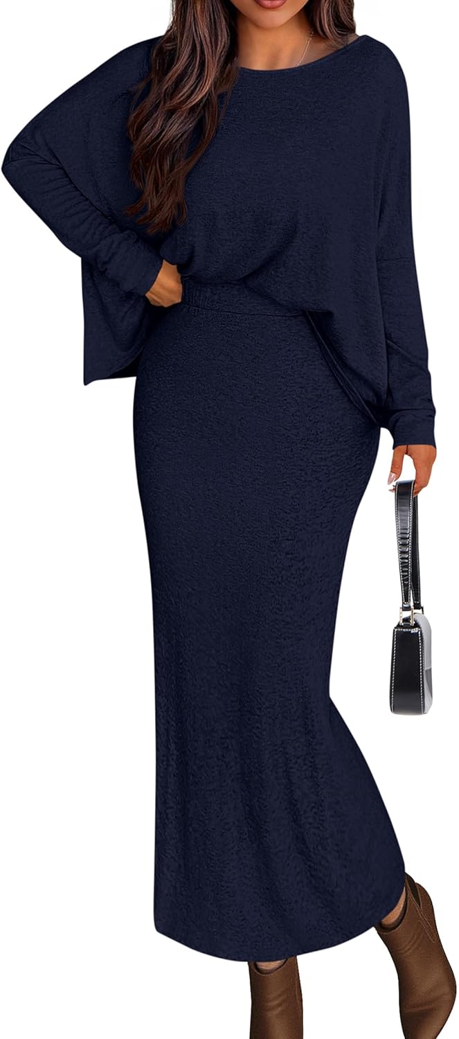- FEATURES: Matching Sets Women Clothing; Two Piece Skirt Set for Women; Long Sleeve Shirts for Women; Maxi Skirt with Slit; Loose Fitting Dolman Sleeve Tops for Women; Bodycon Long Skirt; Elastic High Waisted Skirts for Women; Womens Sets 2 Piece Outfits